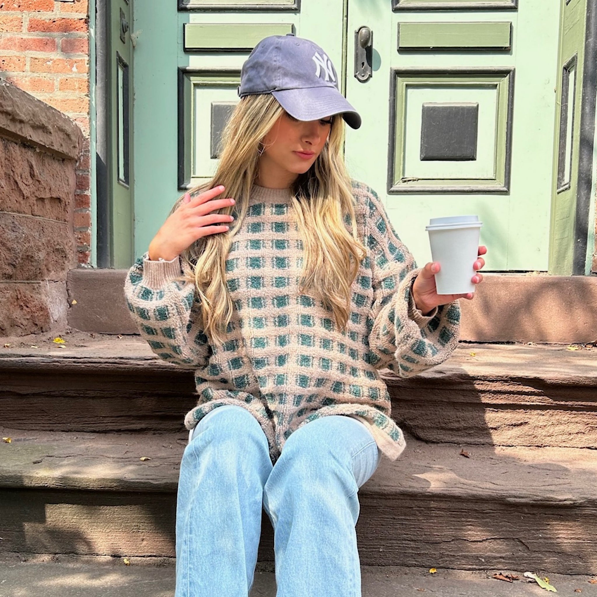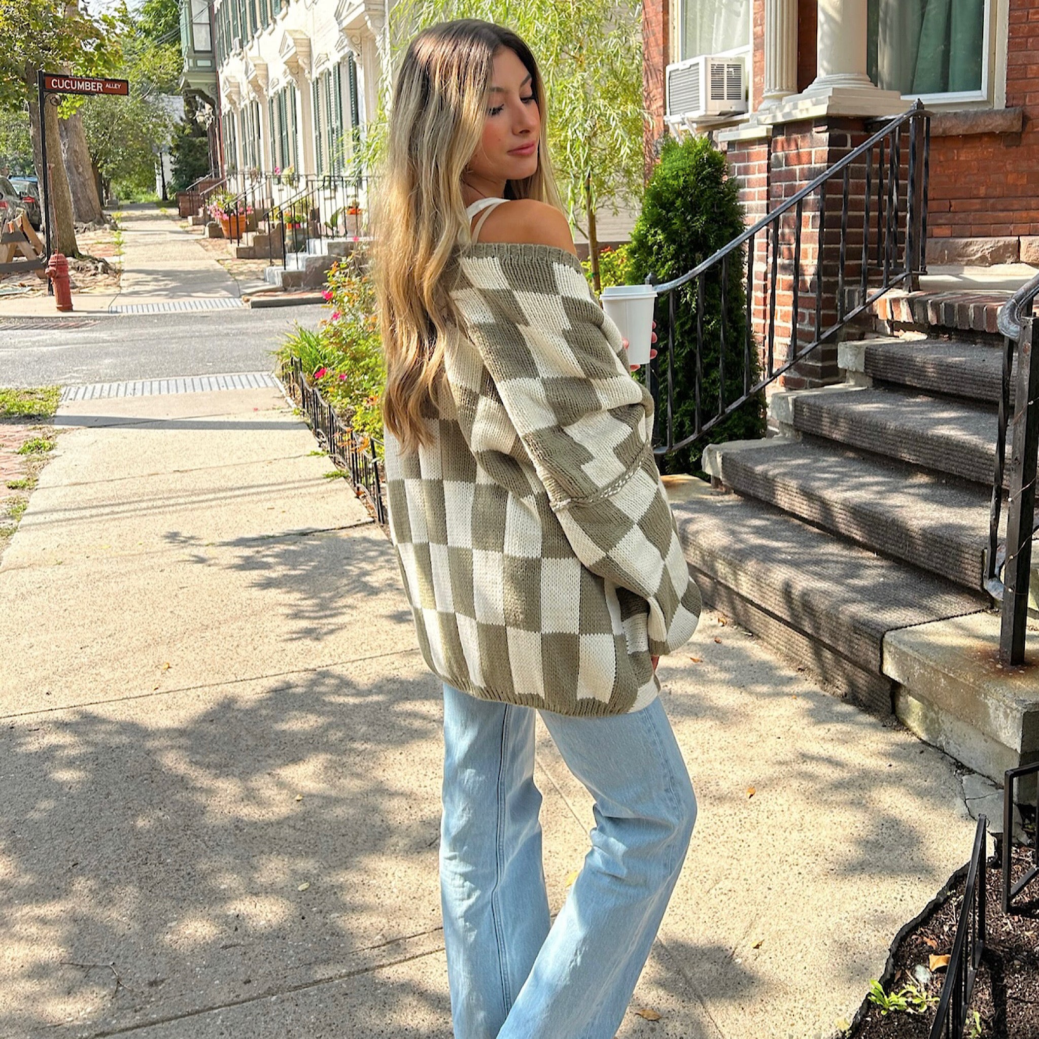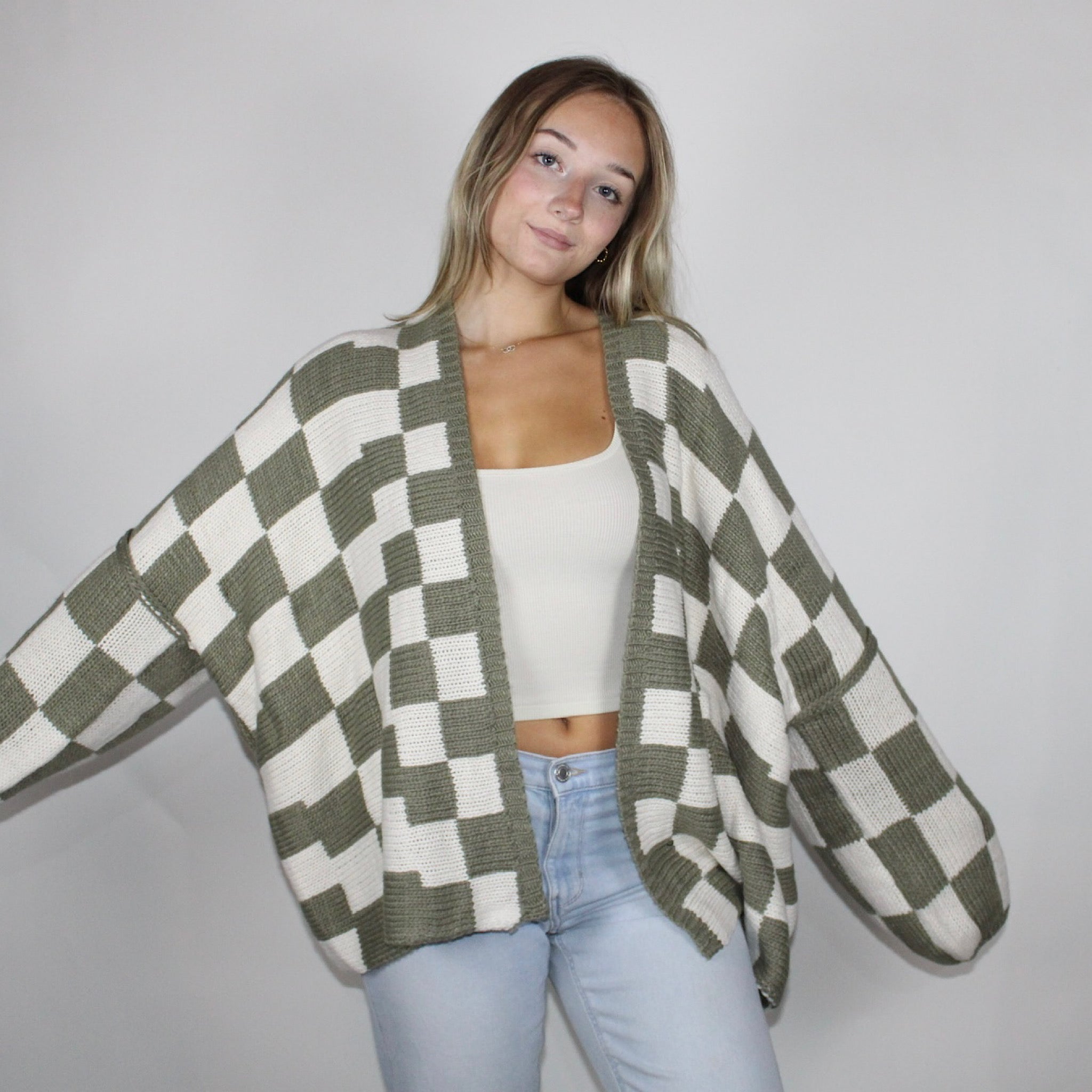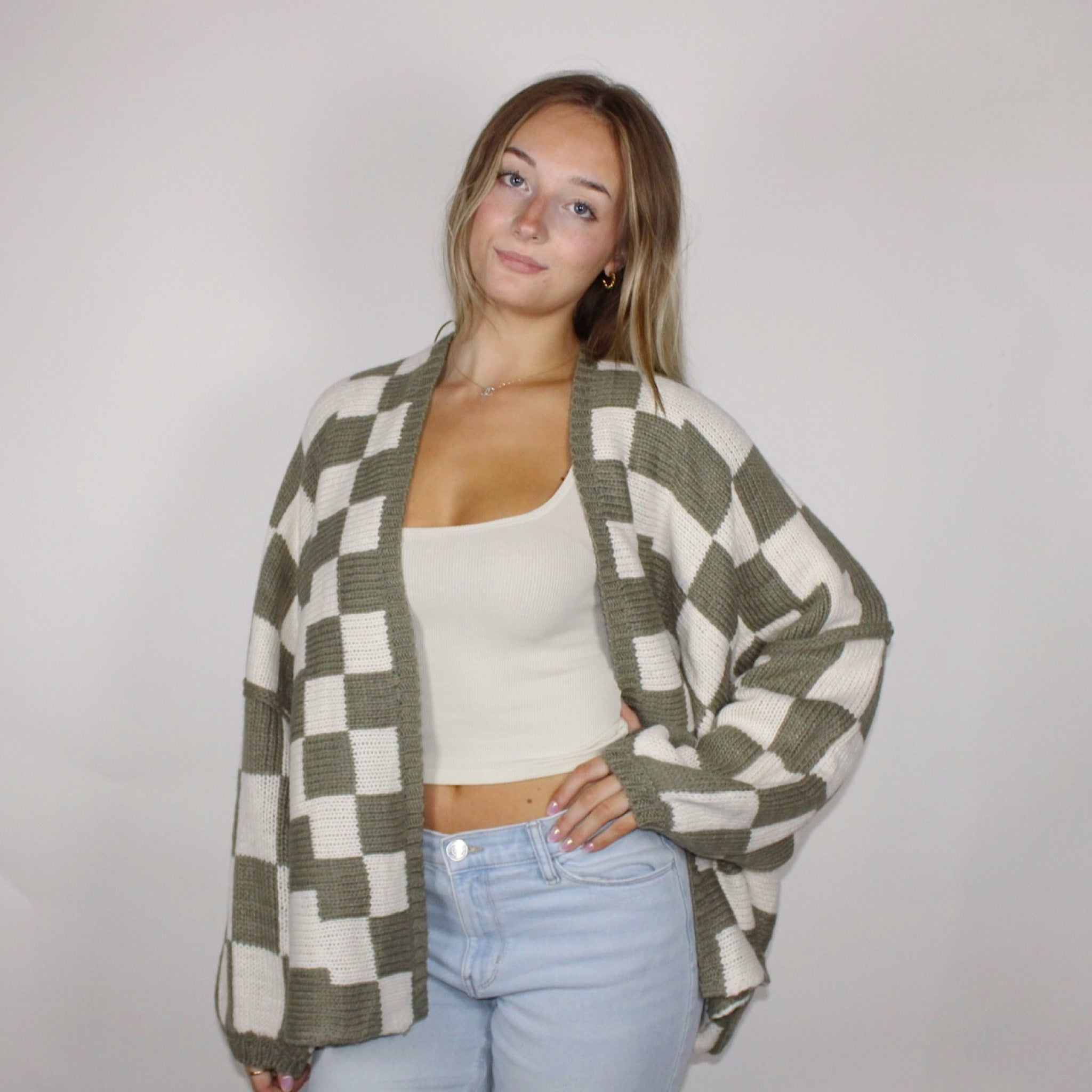 Chelsea Checkered Cardigan Olive