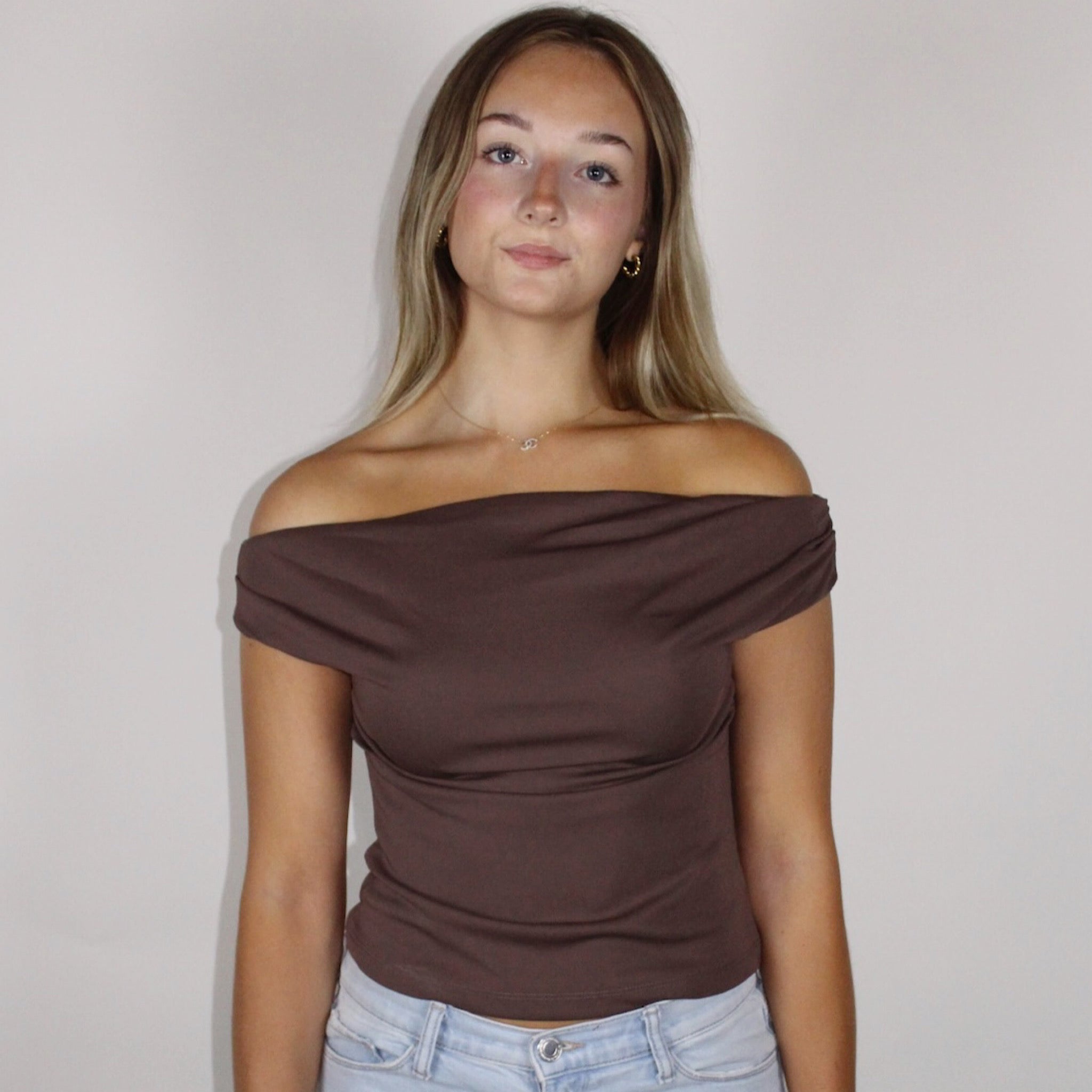 Tori Off the Shoulder Top Brown