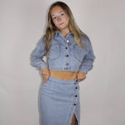 Introducing the "Trendsetter Cropped Denim Jacket," a must-have staple for any fashion-forward wardrobe. This chic denim jacket combines classic style with a modern twist, perfect for elevating your women's fashion collection. The cropped silhouette offers a contemporary edge, creating a flattering shape that pairs effortlessly with high-waisted jeans or skirts. Crafted from high-quality, durable denim, it features a soft yet structured fit, making it ideal for layering throughout the seasons. The versatile design allows you to transition seamlessly from day to night, whether you're heading to brunch, a casual outing, or an evening event. Embrace the ultimate blend of style and functionality with the Trendsetter Cropped Denim Jacket, a timeless piece that ensures you stay on-trend and effortlessly stylish