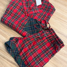 Celebrate the season in comfort and style with our red and green flannel pajama set, designed for the ultimate holiday vibes. Made from soft, breathable fabric, this women's pajama set keeps you warm during the chilly fall and winter nights. The festive plaid pattern is a timeless favorite, perfect for lounging at home, sipping cocoa by the fire, or snapping cozy holiday photos.